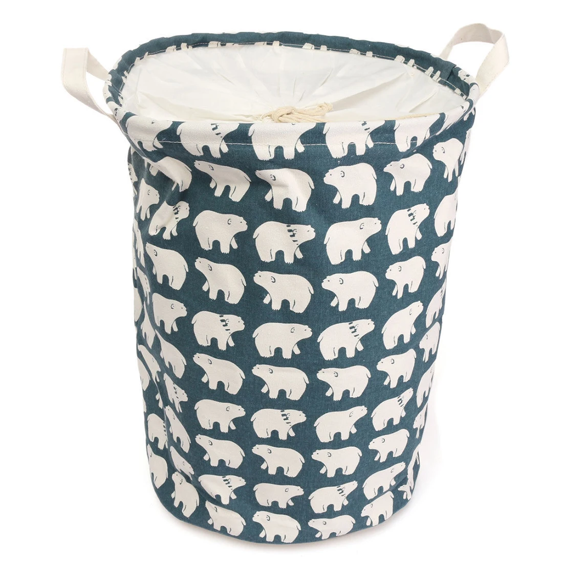 استعارات ل أفضل طوي القطن الكتان غسل الملابس سلة الغسيل فارز حقيبة تعوق التخزين ، الأزرق الدب القطبي-35*45 سنتيمتر