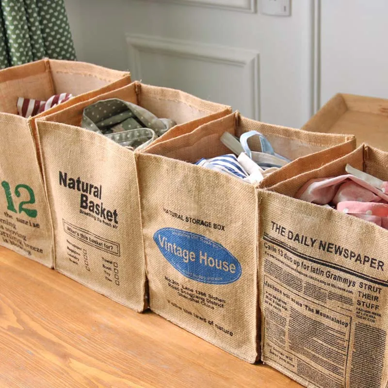 صور من للطي الكتان الملابس حقيبة الغسيل الجوت القطن أشتات سلة للطي الطبيعي النسيج المنزل علب تخزين للملابس المنظمون