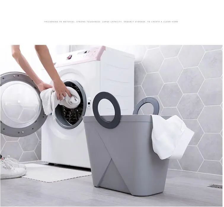 استعارات ل سلال الغسيل المحمولة تعرقل القذرة صندوق تخزين ملابس سلة لعبة تخزين دلو سلة تخزين من البلاستيك الأزرق الأبيض رمادي
