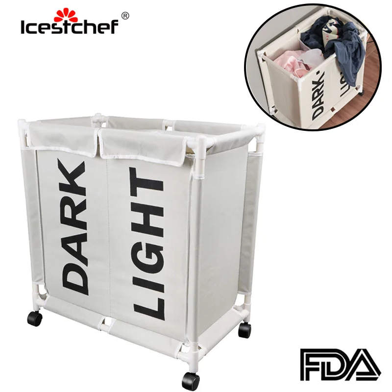 معرض ل ICESTCHEF للماء سلة الغسيل مع عجلات سلة الغسيل مع غطاء القذرة القماش سلة غطاء الحمام تخزين 2 الشبكة
