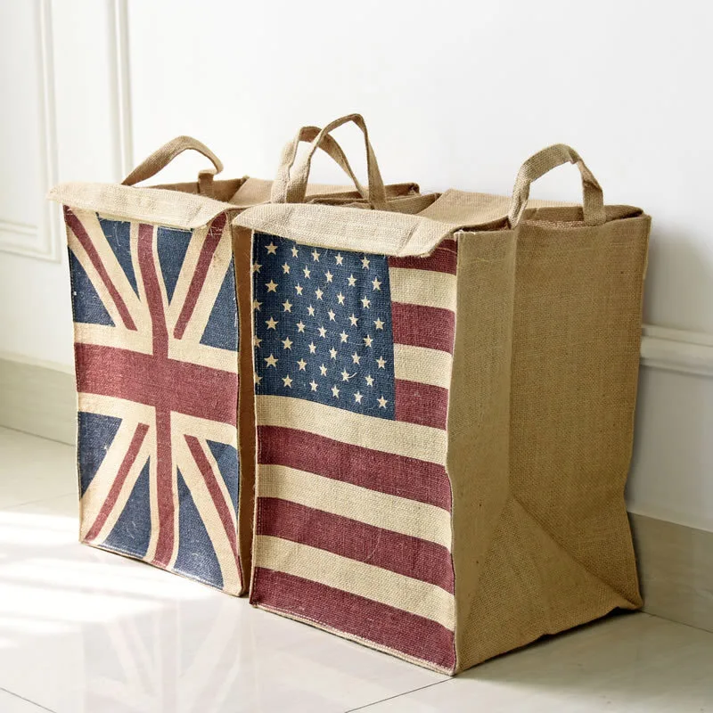 استعارات من العلم الوطني فريد طوي حقيبة التخزين مع غطاء غبار القطن الكتان غسل الملابس سلة كبيرة للغسيل منظم منزلي