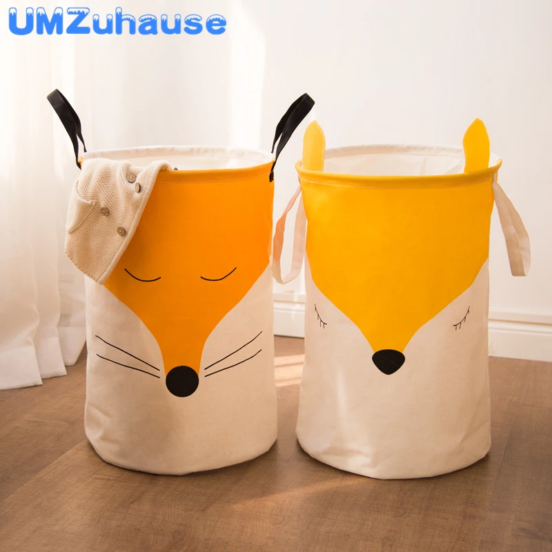 استعارات ل لطيف الثعلب القذرة الغسيل الملابس سلة صناديق المنظمون الملابس لعبة الكرتون الحيوان أشتات حقيبة التخزين للطي المنزل منظمة