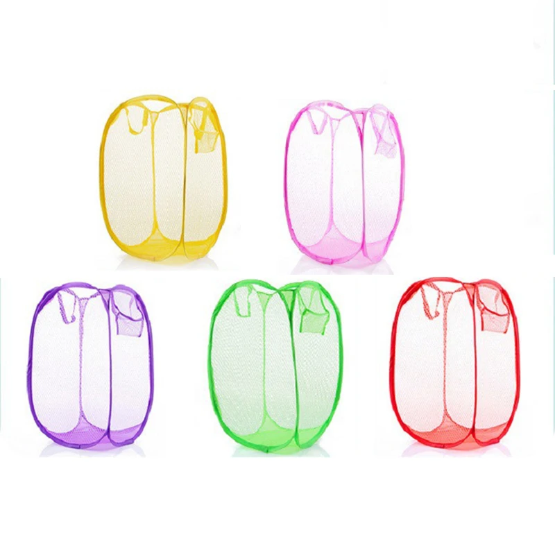 صور ل 4 قطعة/الوحدة شبكة سلة الغسيل القابلة للطي الملابس القذرة/سلة تخزين الألعاب التشطيب سلة